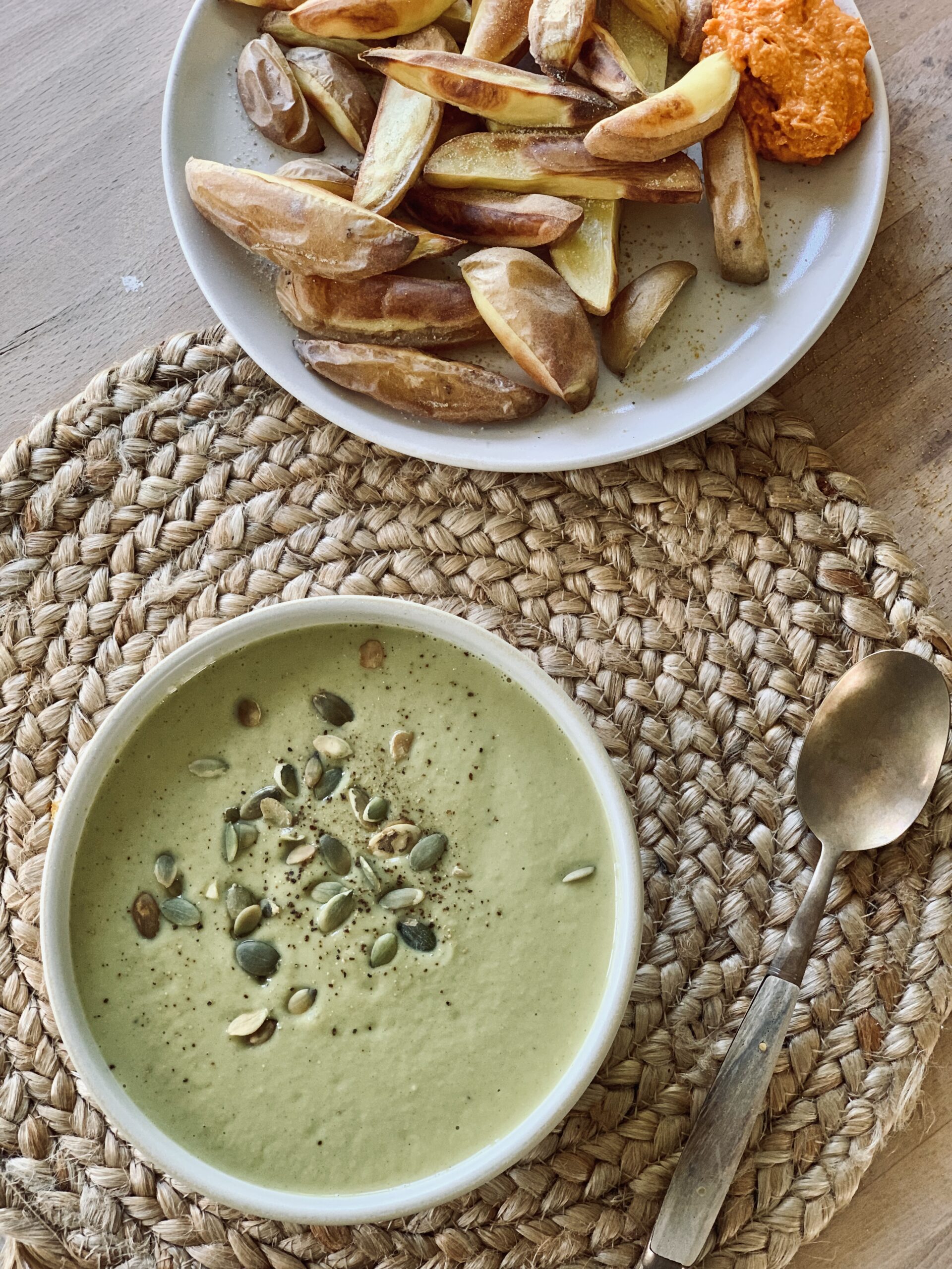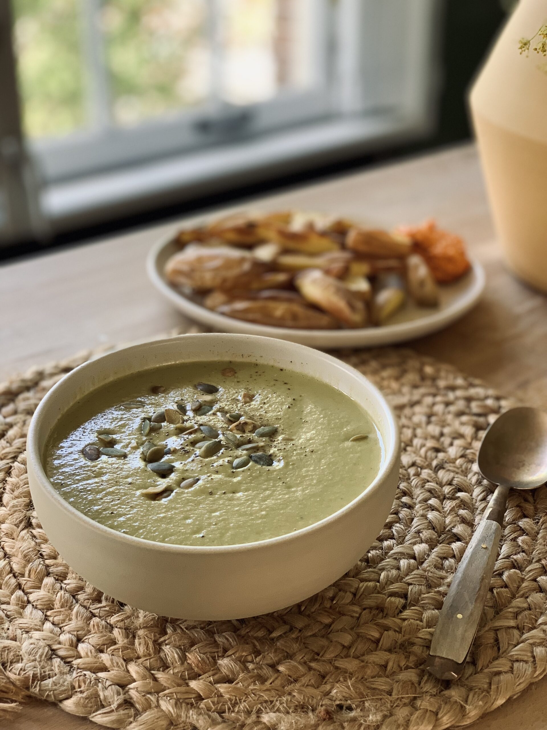 This soup can be perfectly eaten as lunch or dinner. It’s delicious to serve with a slice of sourdough bread or this airy gluten-free bread. Or roast some potatoes or sweet potatoes in the oven. Instead of mayonnaise, I like to dip them in hummus. You can find a recipe for homemade hummus here.