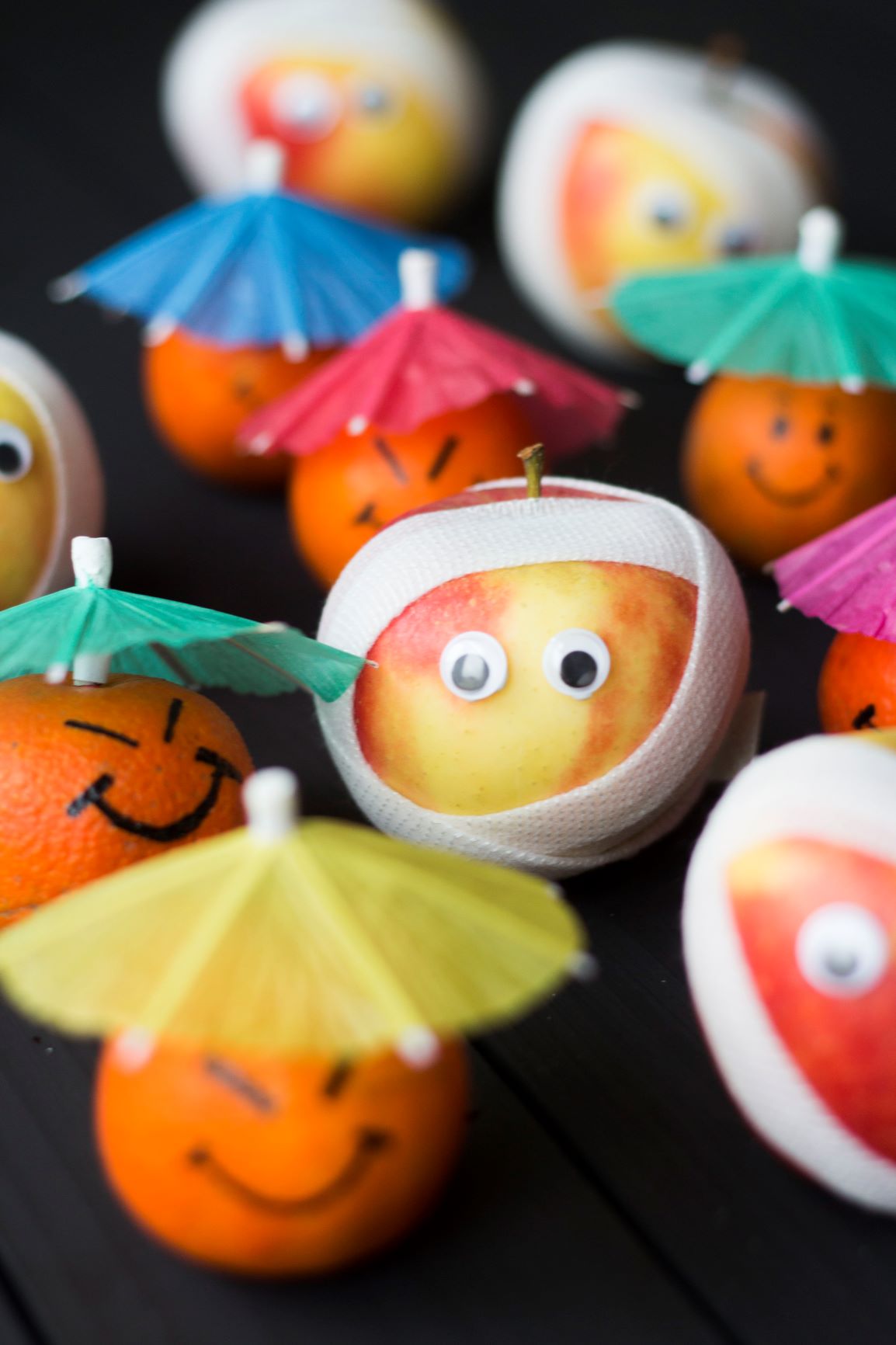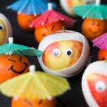 3. Teken op elk mandarijntje een gezichtje.